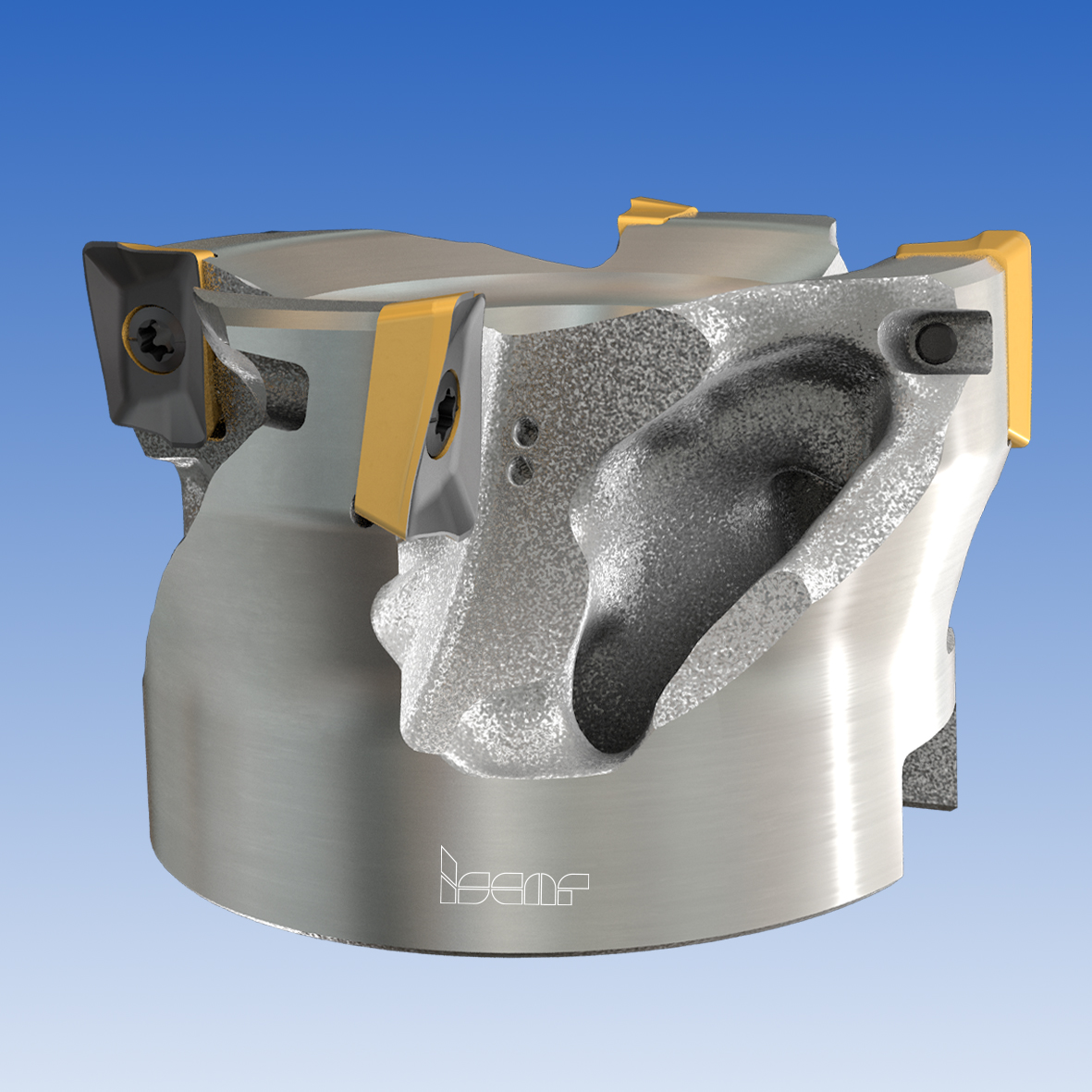 The shell mill body is shaped by the use of selective laser melting (SLM) techniques, being one of the 3D printing techniques. As a result, tool body elements such as chip gullets and weight-reduction cavities feature sophisticated forms, uncommon for machining metals. (Fig. 2, 3). Additive manufacturing technologies enable maximum use of computational fluid dynamics for optimizing the profile of inner channels to ensure efficient pinpointed coolant through the cutter body. Traditional machining processes have limitations in shaping the channels, while AM capabilities provide endless options. The mill design concept also utilizes the unequal angular pitch principle to improve the vibration resistance of the cutter.